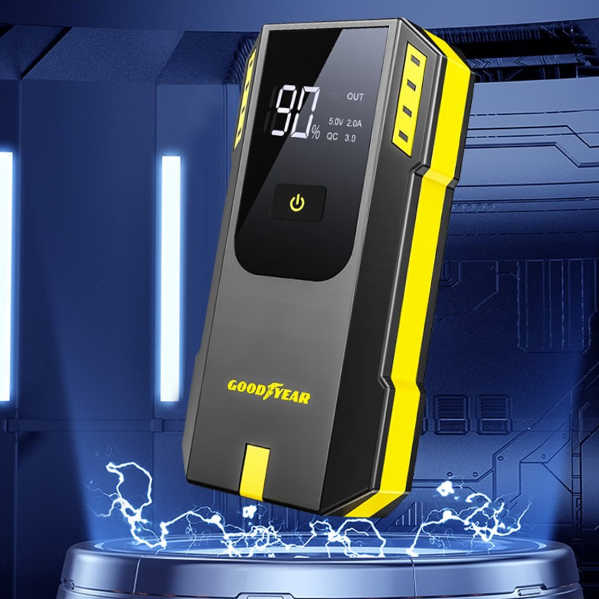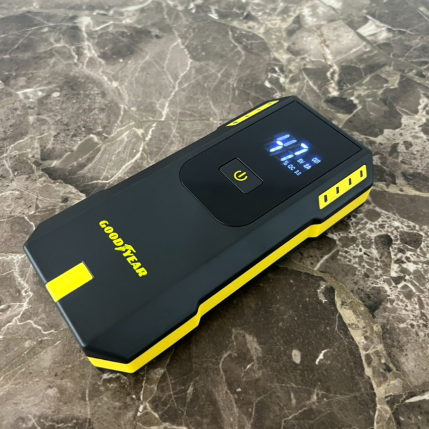 Mua tại TiktokBộ kích điện ô tô kiêm pin sạc dự phòng Goodyear GY-5358 12000mAh Goodyear là một trong những công ty sản xuất lốp xe lớn nhất thế giới. Không chỉ nổi tiếng trong lĩnh vực sản xuất các loại lốp xe mà còn liên tục phát triển nghiên cứu các dòng sản phẩm phụ kiện cao cấp trang bị cho ô tô. Giới thiệu kích điện ô tô kiêm sạc dự phòng cao cấp Goodyear GY-5358 Giới thiệu kích điện kiêm pin sạc dự phòng Goodyear GY-5358