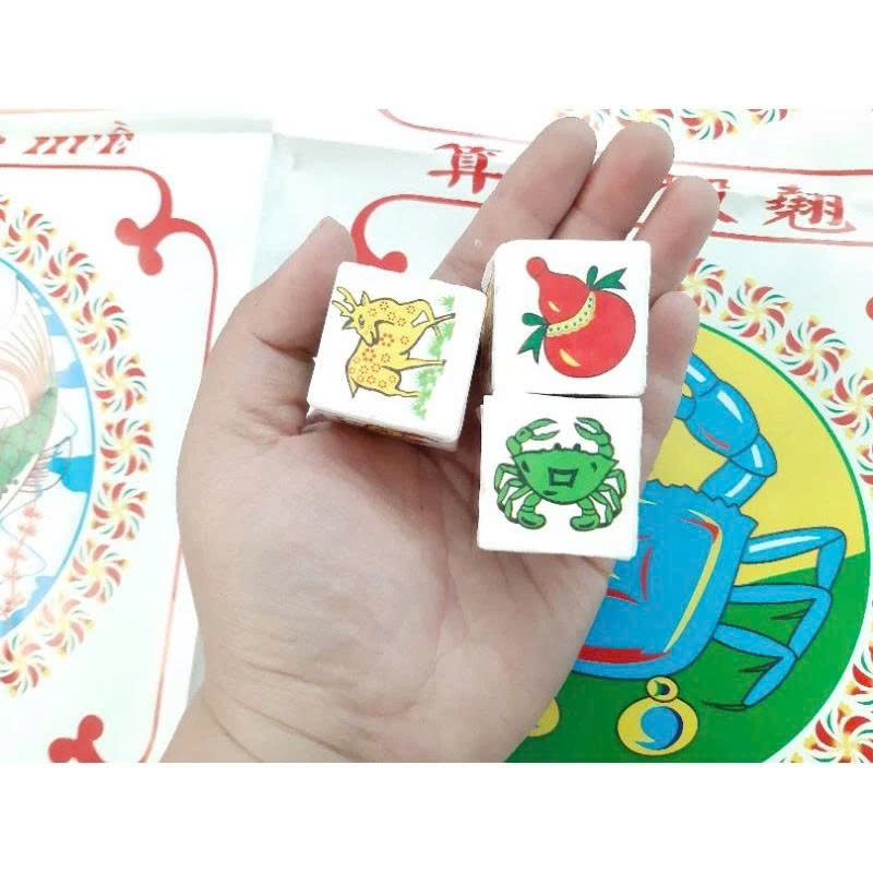 ✨Bộ lắc bầu cua tôm cá hột giấy giải trí vui nhộn hàng Việt Nam gồm bàn giấy 65cm x 43cm và 3 xúc xắc, đồ chơi ngày tết