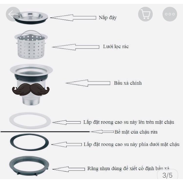 ✨Bộ Lọc Bầu xả chậu rửa chén Inox 304 Phi 140