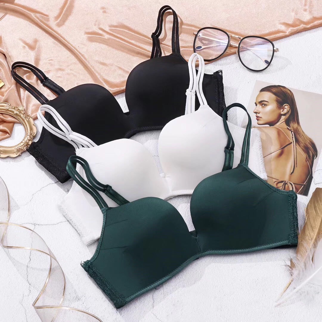 Bộ Lót Nữ Trơn Mút Vừa Không Gọng Phối Ren Lưng B04 – Set 3 Áo Màu Đen, Trắng, Xanh Rêu