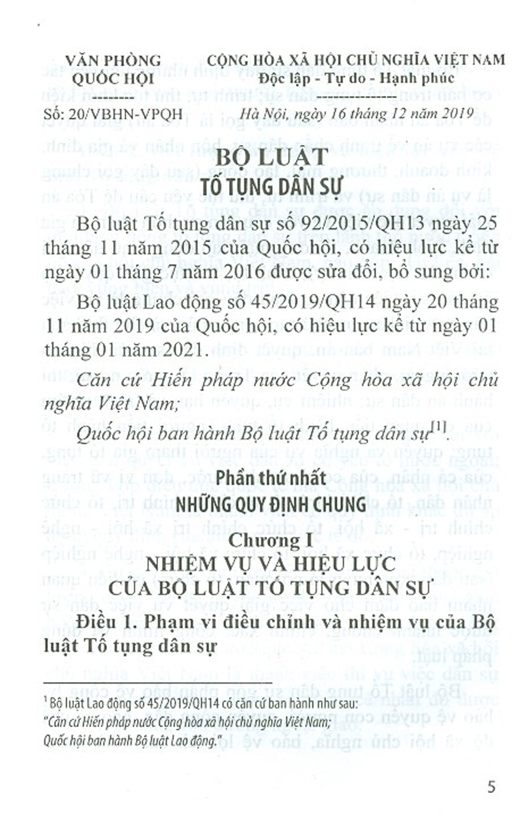 [Đọc luật - Bản full] Bộ luật tố tụng dân sự 2015 - VBHN số 20 năm 2019
