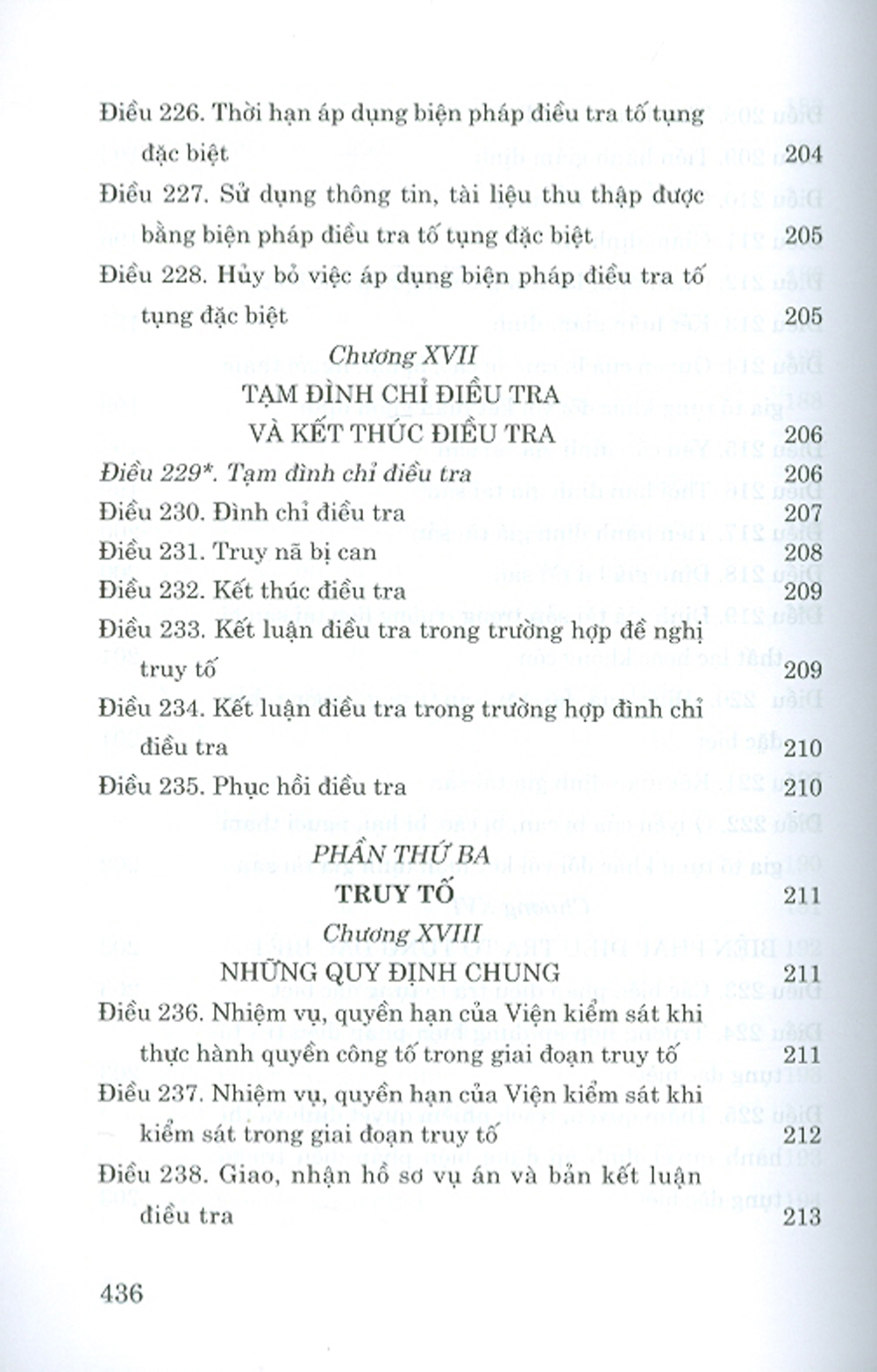 Cuốn sách gồm 9 phần, 510 điều, quy định trình tự, thủ tục tiếp nhận, giải quyết nguồn tin về tội phạm, khởi tố, điều tra, truy tố, xét xử và một số thủ tục