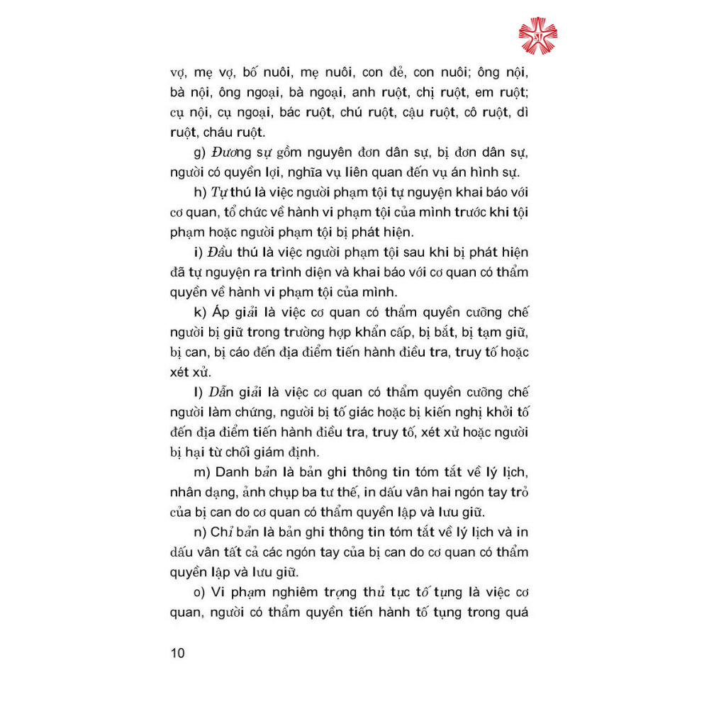 Thuật ngữ pháp lý tố tụng hình sự Tác giả: PGS. TS. GVCC. Phan Trung Hiền (Chủ biên) Số trang: 336 Khổ sách: 16*24cm Phát hành: 11.2021 Bộ luật Tố tụng hình sự năm 2015