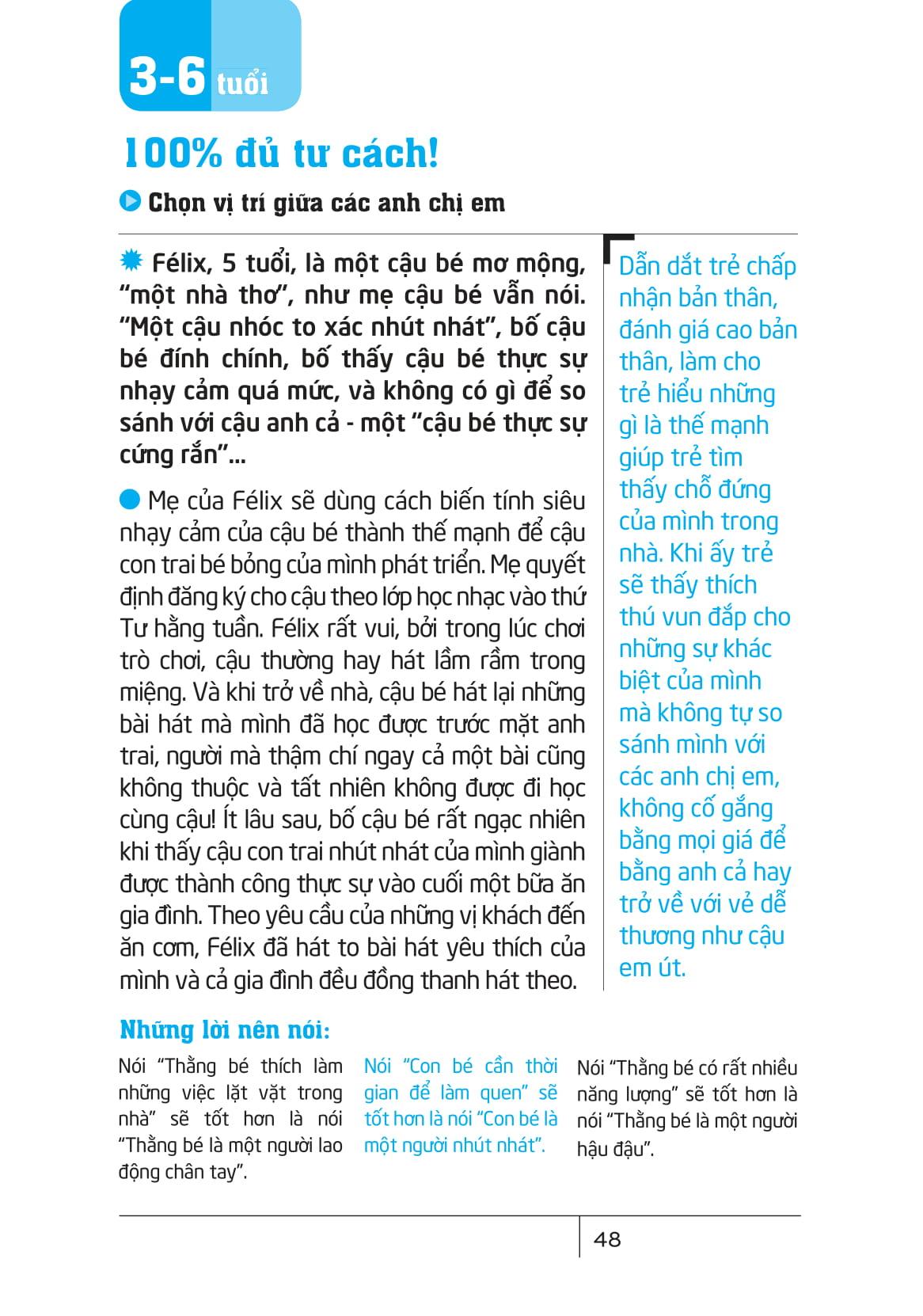 Đã bao giờ bạn thấy bất lực khi con mình lăn lộn trong siêu thị, khóc hết nước mắt chỉ vì một quả bóng bay bị nổ, hoặc thức giấc mỗi đêm vì sợ hãi những "quái vật tưởng tượng"? Những cơn la hét, giọt nước mắt, hay nỗi sợ vô hình thường khiến cha mẹ rơi vào hoang mang, không biết phải làm gì để xoa dịu và thấu hiểu con. Cuốn sách này là chìa khóa giúp bạn giải mã thế giới cảm xúc đầy bí ẩn của trẻ. Mỗi cảm xúc đều chứa đựng một ý nghĩa, ý định riêng. Bằng cách sử dụng những ví dụ thực tế từ đời sống, cuốn sách giúp cha mẹ: - Hiểu được từng cung bậc cảm xúc của trẻ và các dấu hiệu ẩn chứa đằng sau. - Nhận diện nhu cầu thực sự của trẻ thông qua ngôn ngữ cảm xúc, phù hợp với từng giai đoạn phát triển. - Biết cách giao tiếp và hỗ trợ trẻ vượt qua những tình huống khó khăn, đồng hành cùng con trên con đường đi tới sự tự chủ và hạnh phúc. - Đây chắc chắn sẽ là một tài liệu hữu ích giúp cha mẹ và con cái xây dựng một mối quan hệ bền chặt, dựa trên sự đồng cảm và thấu hiểu