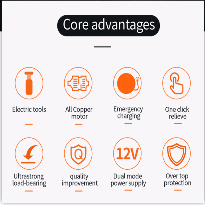 Tên: Kích điện Điện áp: DC 12V Công suất: 150W Chịu tải: 5T Trọng lượng tịnh: 4,5kg Chiều cao: 15,5-45CM Dung lượng pin: 6000MA Tên: Cờ lê điện Điện áp: DC 12V Mô-men xoắn: 350N.M