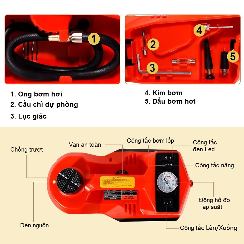 Bộ nâng kích gầm điện, kiêm máy bơm lốp và máy siết ốc ô tô đa năng 3 trong 1