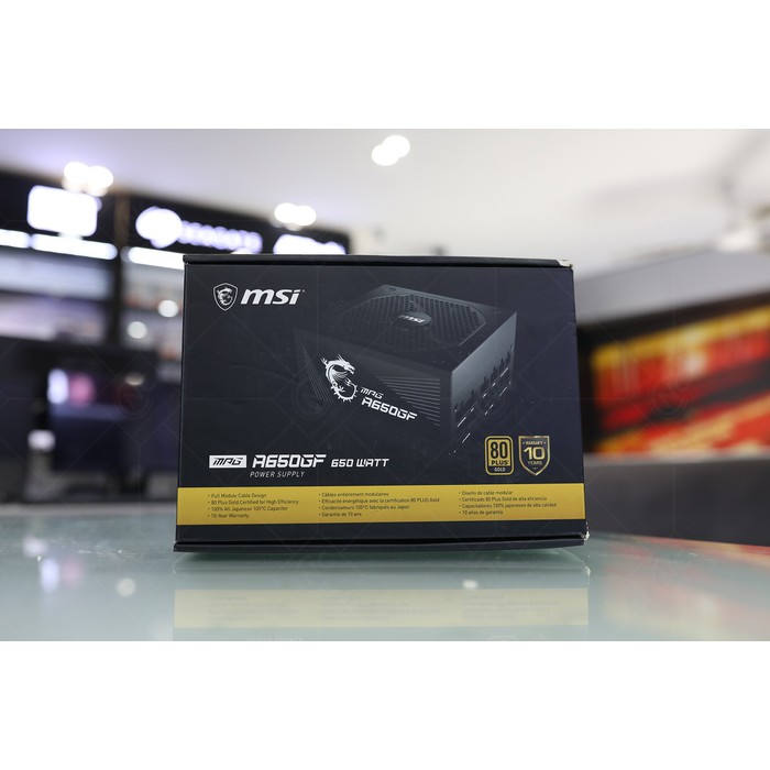 Tình trạng: Mới 100% Xuất xứ: Chính hãng Thương hiệu: MSI TÊN SẢN PHẨM MPG A650GF YẾU TỐ HÌNH THỨC PSU ATX POWER WATT 650W ĐIỆN ÁP ĐẦU VÀO 100 ~ 240 Vac ĐẦU VÀO