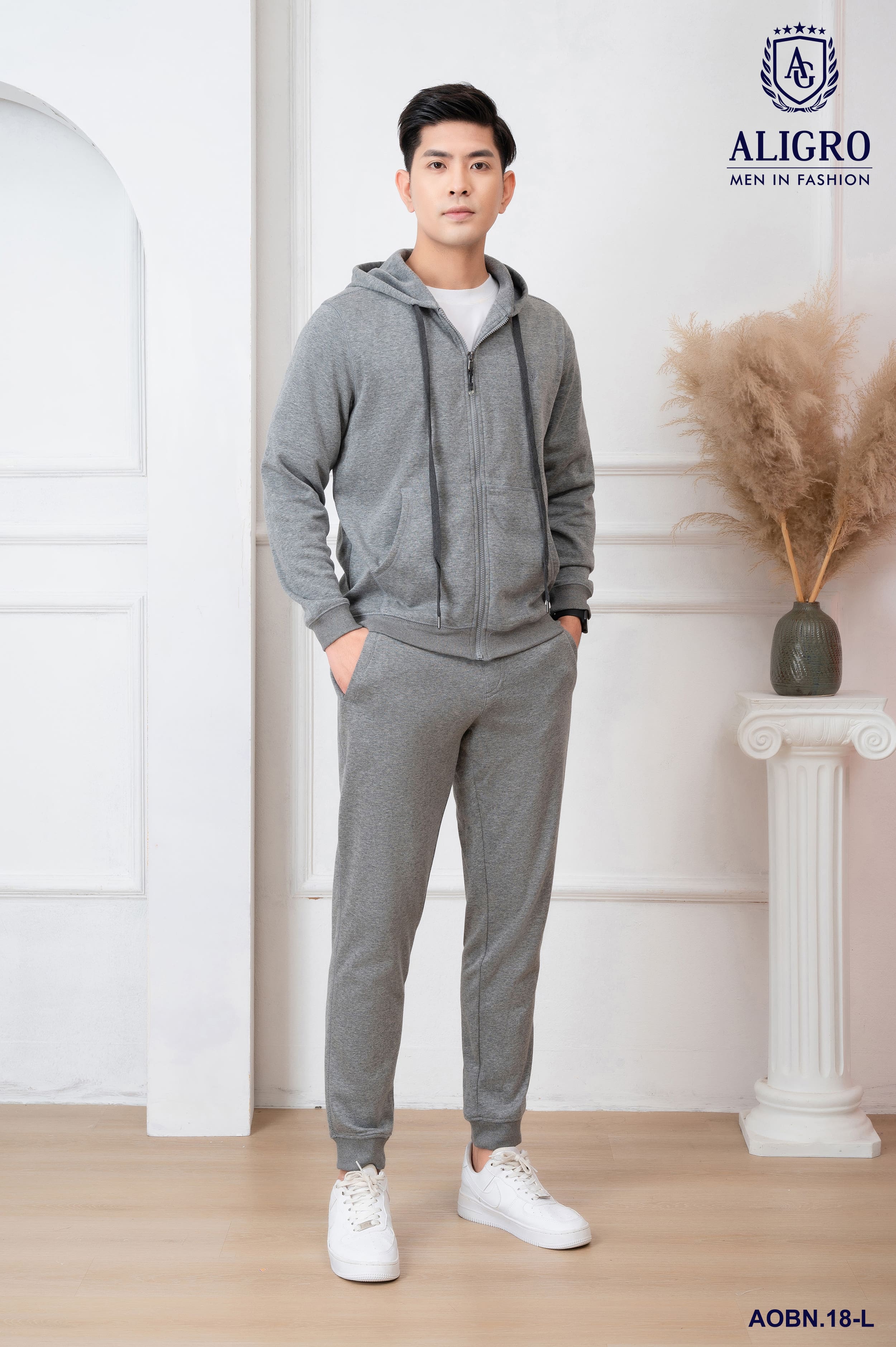 ✨Bộ nỉ kéo khóa ALIGRO có mũ màu ghi nhạt BN.18