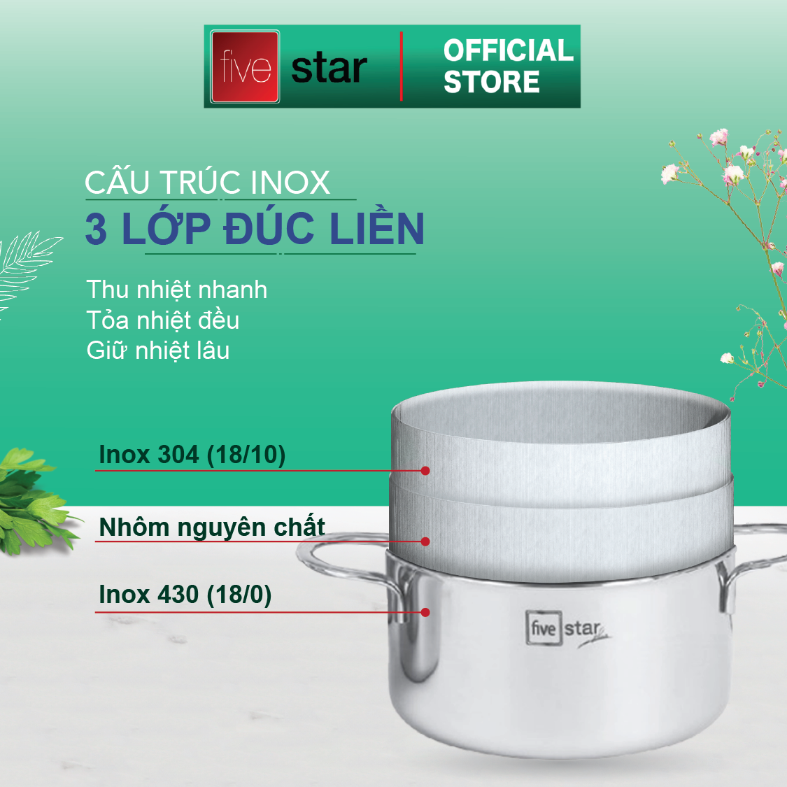 Mã sản phẩm: FPB5006 Xuất xứ bởi Cty Tân Hợp Thành Việt Nam theo tiêu chuẩn và công nghệ Đức Sản xuất tại Việt Nam Chất liệu nồi: Inox 304 cao cấp, 3 lớp đáy