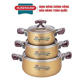 Bộ gồm 3 nồi Anod với những kích cỡ phổ biến 16cm – 20cm – 24cm, đáp ứng nhiều mục đích sử dụng khác nhau trong gia đình (nồi nhỏ 16cm thích hợp để luộc trứng, kho thịt, nồi cỡ trung 20cm để nấu canh cho 3-4 người và nồi lớn 24cm có thể luộc gà, nấu canh hoặc lẩu cho 3-5 người).