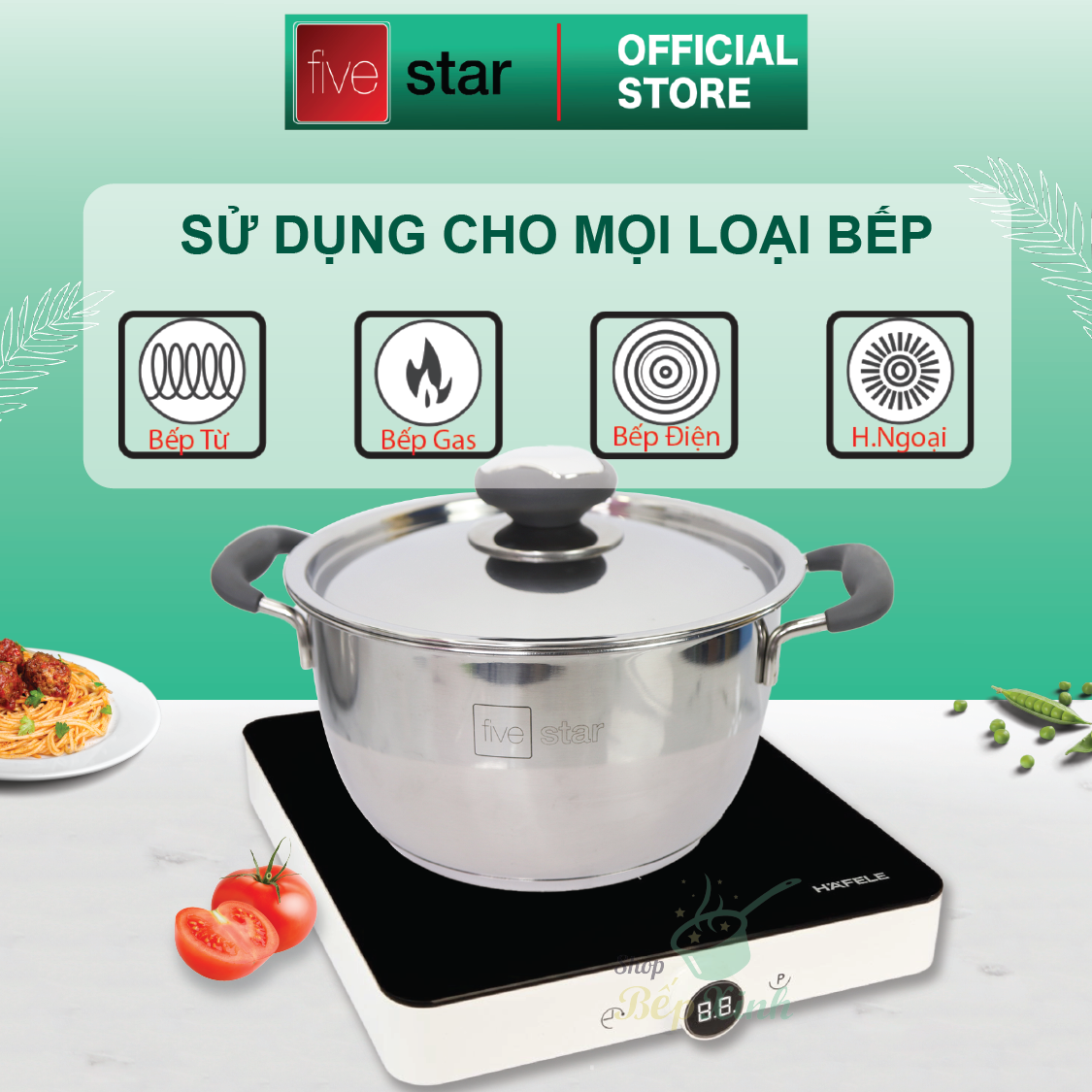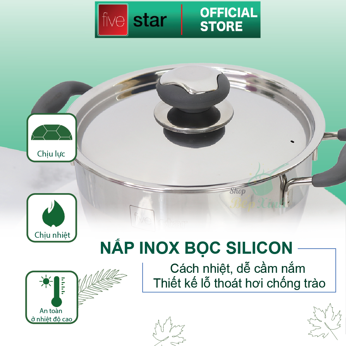 - 1 Nồi Fivestar đường kính 20cm, chiều cao 12cm + nắp inox quai silicon