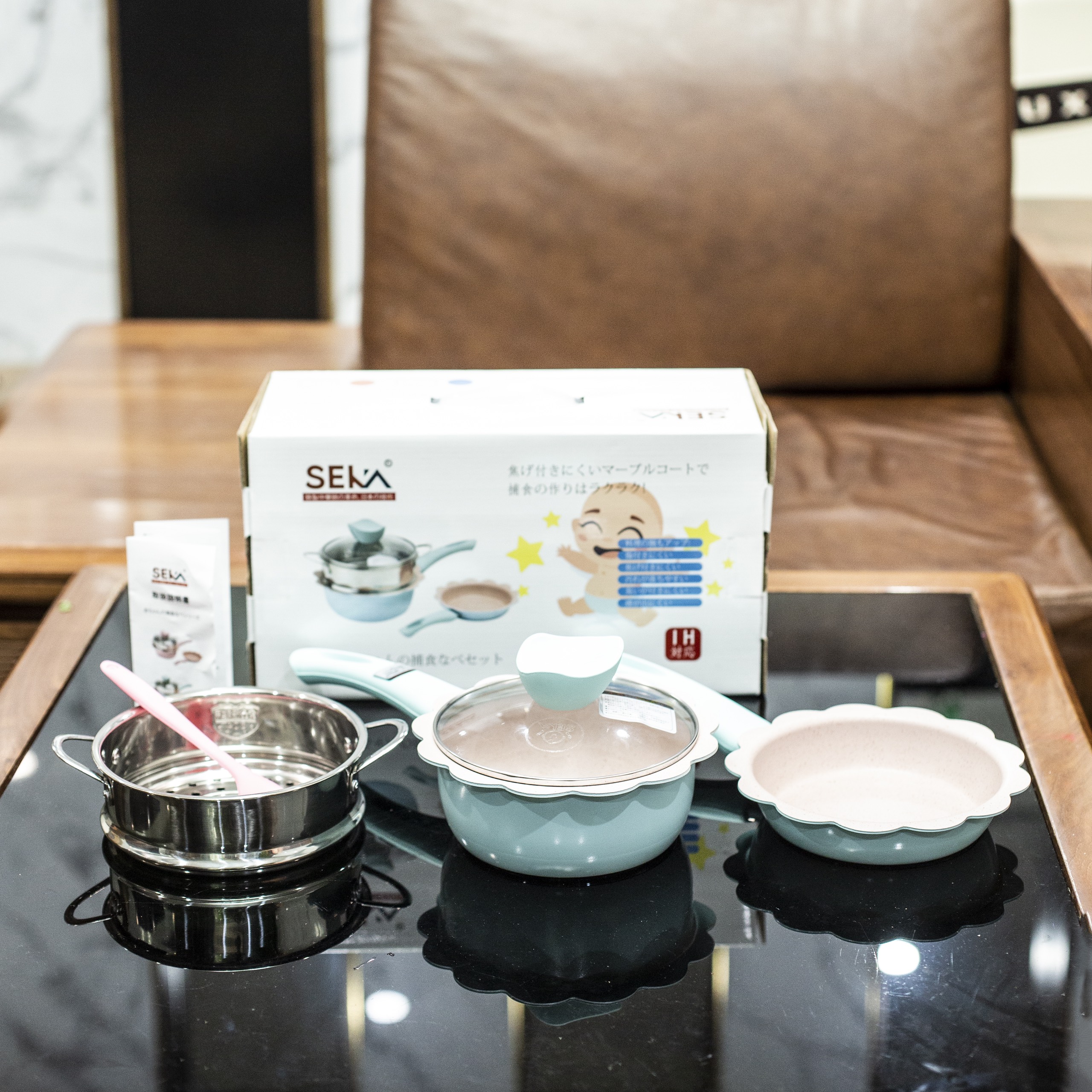 Bộ Nồi Chảo Ăn Dặm Hình Hoa 12 cánh Tráng Men Đá Cao Cấp, Chế Biến Ăn Dặm Cho Bé