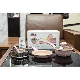 Bộ nồi chảo đá hình hoa cho bé ăn dặm cao cấp chống dính kèm lồng hấp nấu chế biến đồ gia đình