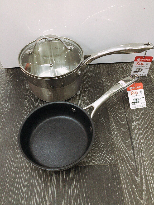 Bộ sản phẩm Elmich Baby sở hữu diện mạo sang trọng, chuẩn châu Âu với chất liệu inox sáng bóng.