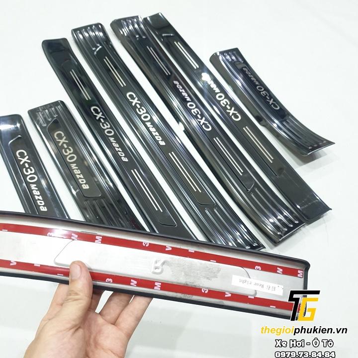 Bộ Ốp Bậc Cửa Trong Ngoài Xe Mazda Cx5 2018-2022, chất liệu Titan có tác dụng che chắn và bảo vệ cho bậc chân lên xuống hạn chế những trầy xước hoặc hư hỏng cho