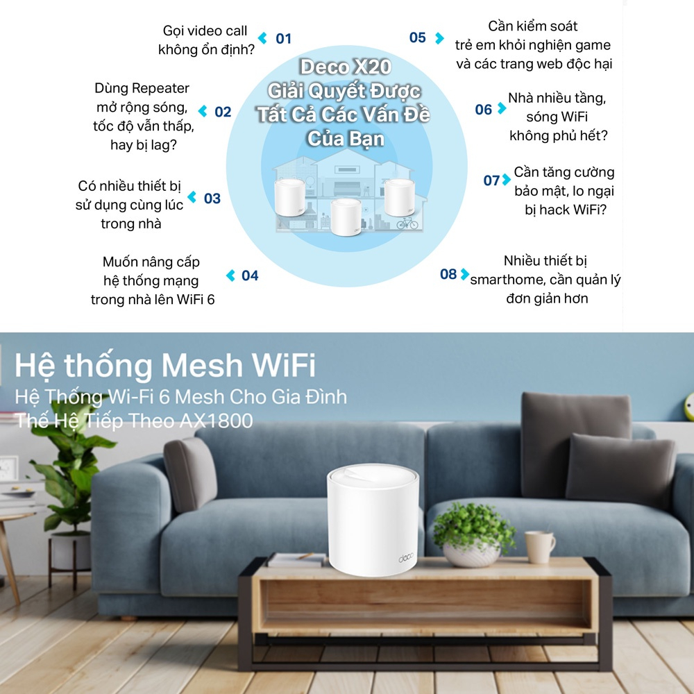 ✨Bộ Phát Wifi Mesh TP-Link Deco X20 Wifi 6 AX1800 - HÀNG CHÍNH HÃNG