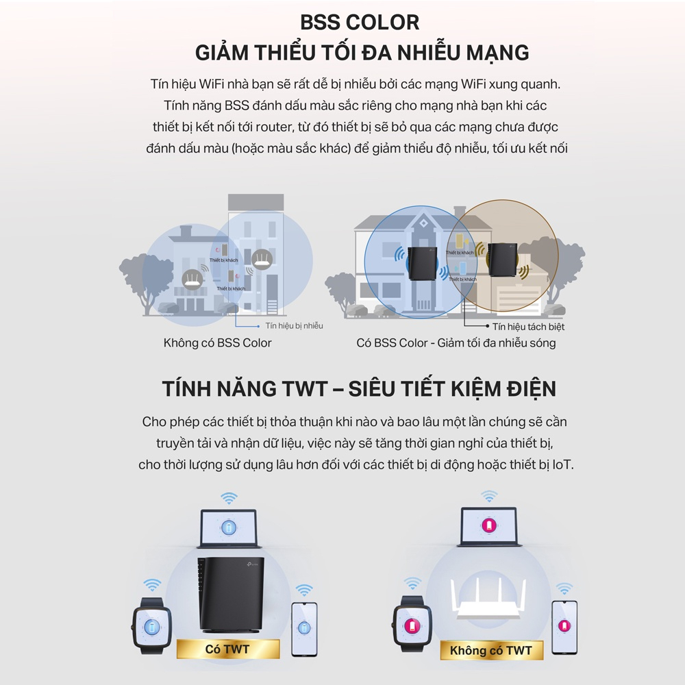 Router 3200Mbps Wi-Fi 6 Dual-band Gigabit Mesh: - Băng thông lớn; CPU lõi kép 4 luồng, hỗ trợ NAT - Truy cập đồng thời 48 người dùng (đề xuất) truy cập Wifi hai dải băng