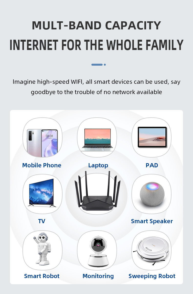 Router 3200Mbps Wi-Fi 6 Dual-band Gigabit Mesh: - Băng thông lớn; CPU lõi kép 4 luồng, hỗ trợ NAT - Truy cập đồng thời 48 người dùng (đề xuất) truy cập Wifi hai dải băng