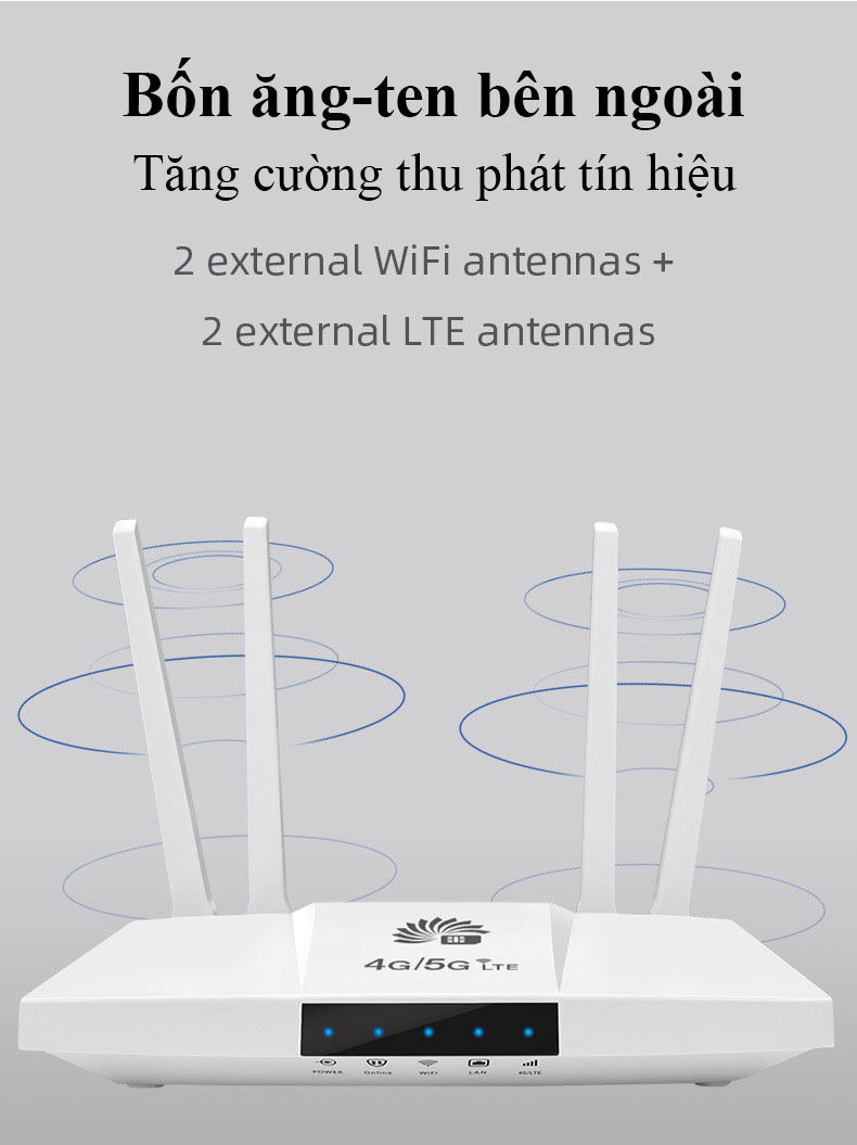 - B828 đặc trưng với 4 anten, tối ưu hóa tín hiệu WiFi, mang đến kết nối mạnh mẽ và ổn định trên mọi thiết bị Linh hoạt sử dụng cho điện thoại, máy tính, máy chơi game, camera, xe khách và khu vực không thể kết nối mạng cố định, mang đến trải nghiệm internet mọi nơi.