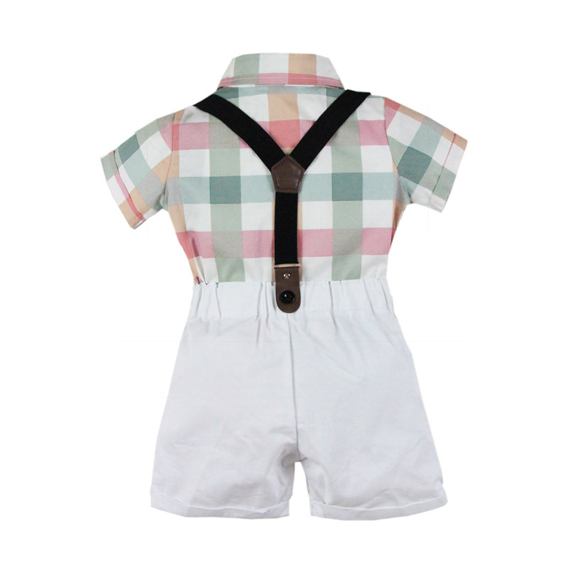 Bộ body sơ sinh bé trai cao cấp, set body sơ mi cộc tay & quần sooc dây đeo công tử dễ thương | MB11