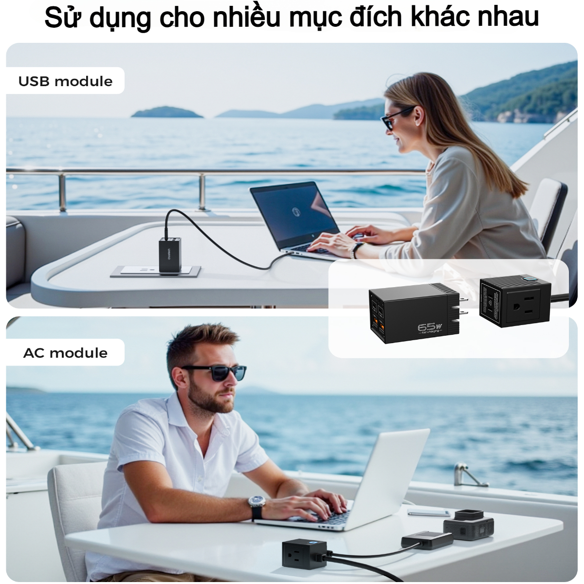 - Bộ sạc nhanh đa năng Baseus GaN Travel Quick Charger 65W với công suất sử dụng lên đến 65W hỗ trợ nhiều chuẩn sạc nhanh mới nhất hiện nay cho phép bạn có thể