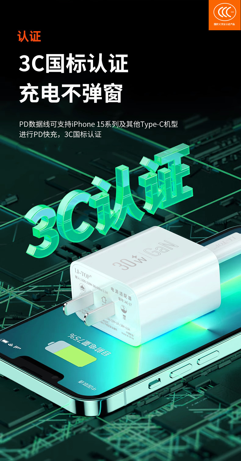 Bộ sạc nhanh LI-TOP GaN AT17 chân Ios (L) công suất PD 30W, có chứng nhận 3C tiêu chuẩn quốc gia, hàng chính hãng, cho dùng thử 30 ngày hoàn trả