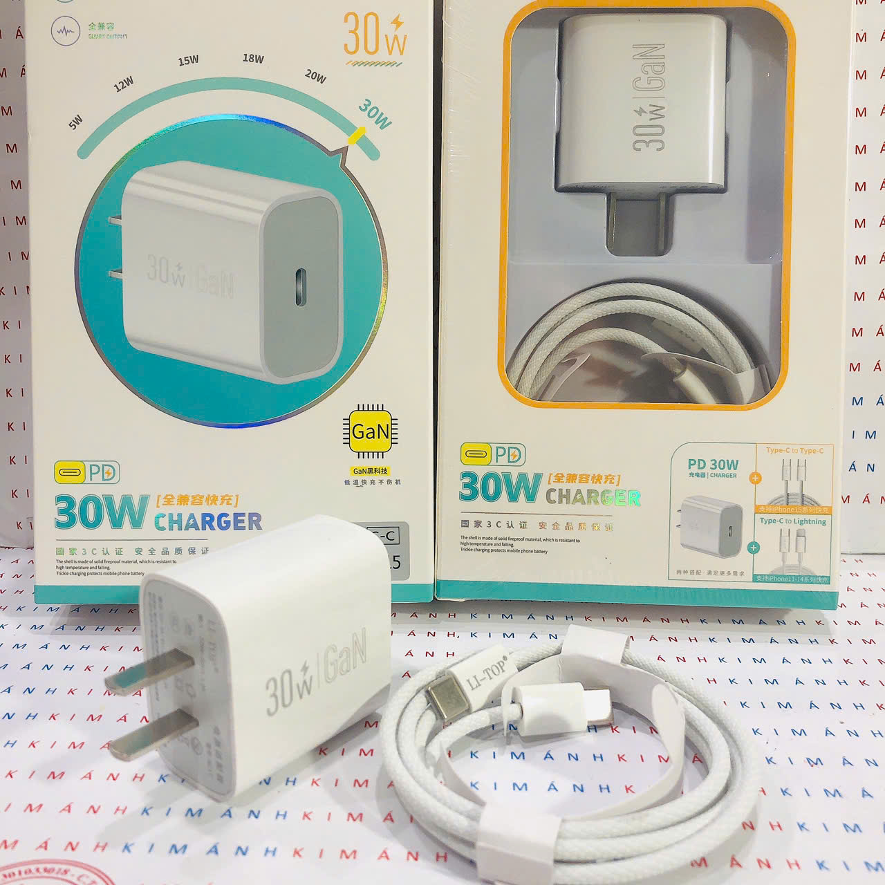 -Tất cả các sản phẩm của Kim Ánh bán điều có chính sách dùng thử trong 30 ngày để kiểm nghiệm chất lượng sản phẩm, trong thời gian này bạn hoàn toàn có thể trả hàng mà không cần lý do (giữ lại Seal, tem của Shop, quà tặng), phí vận chuyển về Shop là 15k trong trường hợp sản phẩm không bị lỗi ️Cty Kim Ánh đạt giải nhất về chế độ bán hàng ưu việt nhất trong khu vực, khách yên tâm tin dùng nhé!!!!️ ------------------------------------------------------- Bộ sạc nhanh LI-TOP GaN AT17 chân Type C công suất PD 30W, có chứng nhận 3C tiêu chuẩn quốc gia, hàng chính hãng, cho dùng thử 30 ngày hoàn trả Sản phẩm Li-Top do Kim Ánh nhập trực tiếp về, trên thân và hộp có khắc dấu chứng nhận 3C tiêu chuẩn quốc gia, có cod truy xuất nguồn gốc sản phẩm, qua kiểm định nghiêm ngặt an toàn thiết bị điện , shop sẽ gửi kèm giấy chứng nhận theo đơn hàng đến cho khách, cam kết sản phẩm chính hãng sai 1 đền 100 Củ sạc Li-top công suất sạc nhanh 30W, cổng Type C Dây cáp Li-Top kéo tải 30w, khắc logo 2 mặt đẹp, chân Type C ra Type C Bộ sạc LI-TOP GaN AT17 sử dụng công nghệ sạc GaN có mặt trên những sản phẩm củ sạc, adapter sử dụng chất liệu Gallium Nitride. GaN giúp thu nhỏ kích cỡ của các loại sạc nhanh, đồng thời tối ưu nhiệt lượng tỏa ra từ củ sạc, khiến sạc mát hơn và an toàn hơn. GaN thể hiện hiệu quả rất tốt trong việc xử lý thiết bị điện năng cao Hợp chất GaN dẫn điện tốt hơn và cắt giảm được nhiệt năng, dòng điện sẽ hướng về thiết bị sạc nhanh hơn. Điều này vừa tiết kiệm điện vừa tiết kiệm thời gian sạc.