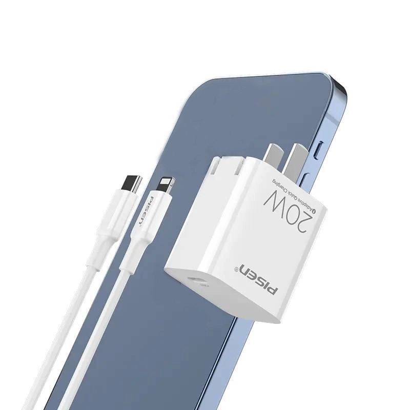 SẠC NHANH HƠN, AN TOÀN HƠN, BỀN BỈ HƠN HOÀN THIỆN TỐT HƠN, CẢM GIÁC THOẢI MÁI HƠN MÔ TẢ SẢN PHẨM: PISEN QUICK - SẠC NHANH TRONG NHÁY MẮT Bộ sạc nhanh 1 cổng 20W cho iPhone 12 Series, cho iPhone 8->11Pro Max, cho iPad, Hỗ trợ đa giao thức sạc nhanh: QC4.0, PD3.0, cho AFC(