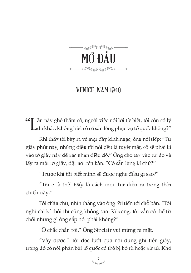 Đây có thể coi là một tác phẩm văn học nước ngoài viết về tình yêu, sự mất mát, lòng dũng cảm, tình bạn, những bí mật và sự khám phá bản thân. Một cô gái như Lettie, ở nơi đất khách quê người, lại là một điệp viên, một người mẹ, một tù nhân chiến tranh và một người tị nạn. Cô dám bỏ lại tất cả, chấp nhận đóng lại cánh cửa quá khứ, để lại những gì cô ấy yêu ở Venice trở về quê hương, bắt đầu lại cuộc sống mới. Từ cuộc đời của người bà trẻ, Caroline nhận ra nhiều điều, cô có thể ngừng thương đau và chấp nhận kết thúc cuộc hôn nhân của mình, cô có thể nhìn mọi việc đã xảy ra ở một góc độ khác, cô ấy rất ngưỡng mộ bà trẻ Juliet – một người trung thành, ngay thẳng, đơn sơ, đứng đắn và rất mực đáng kính – và những di sản mà bà đã để lại.