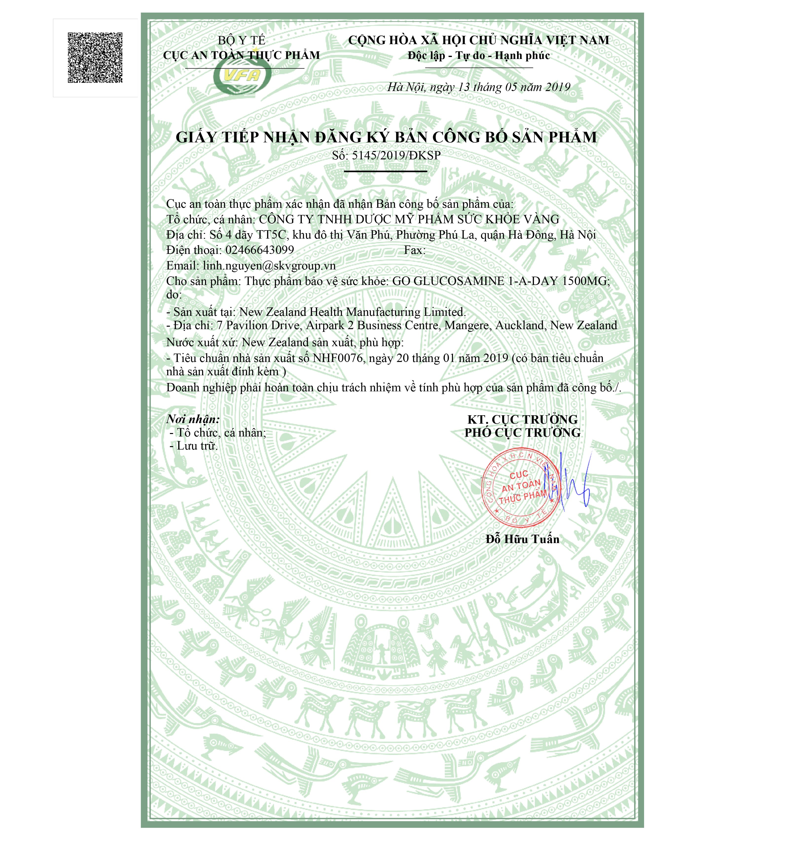 Viên Xương Khớp GO Glucosamine 1-A-Day được bào chế tại nhà máy đạt chuẩn GMP với hệ thống kiểm soát chất lượng nghiêm ngặt của New Zealand. Mỗi viên nang bổ sung 1500mg Glucosamine Sulfate, Chondroitin và các hoạt chất nuôi dưỡng xương, sụn, khớp khỏe mạnh.