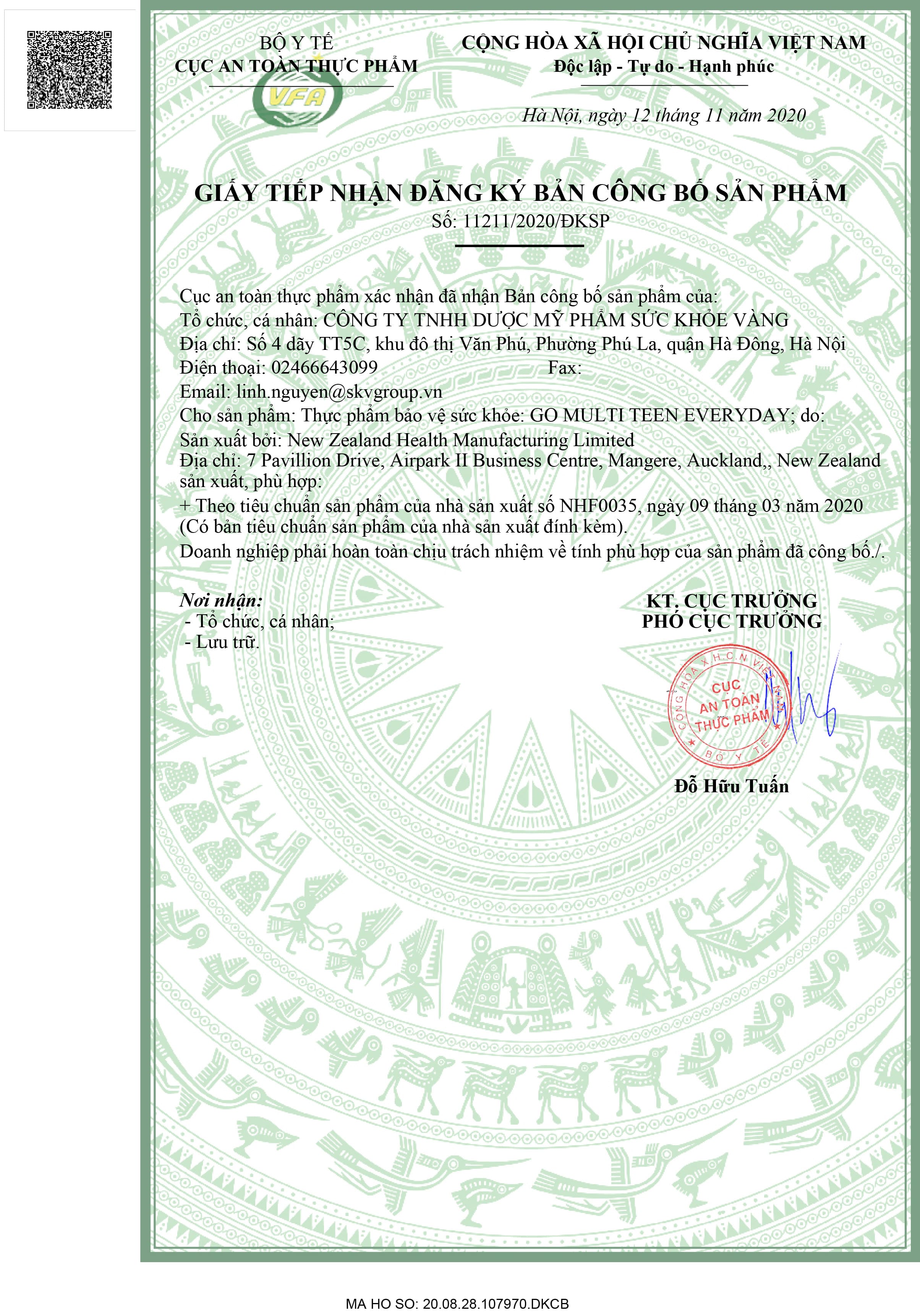 (Theo giấy phép XNCB của bộ Y Tế: 25634/2017/ATTP-XNCB; Số: 11211/2020/ĐKSP ( Lần 2))