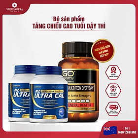 BỘ SẢN PHẨM GIÚP TRẺ TĂNG CHIỀU CAO TUỔI DẬY THÌ GỒM: +2 hộp viên canxi Nano, hữu cơ NZ Ultra Cal (30 viên) - dùng 2 tháng +1 hộp viên đa vitamin GO Multi