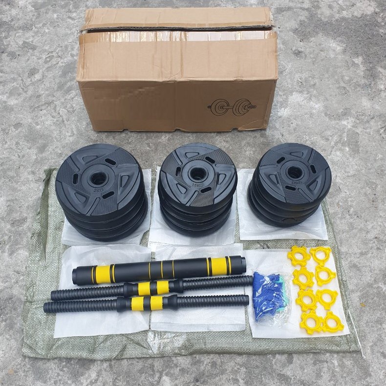 Tạ tay 2 in 1 kết hợp tạ đẩy (tạ đòn) loại 40KG - Chất liệu tạ: PE + bê tông. - Bộ sản phẩm gồm: + Quả tạ:38kg ( 3KG*8 + 2KG*4 + 1,5KG*4