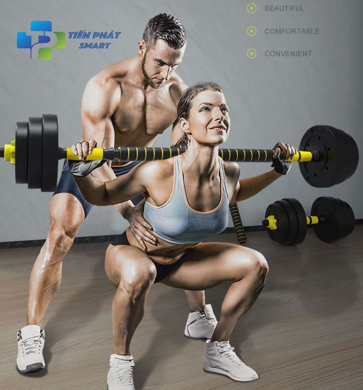 Tạ tay nam nữ PVC 4 in. Kết hợp tạ đòn đẩy 20kg tập tại nhà có thể điều chỉnh trọng lượng bộ tạ miến