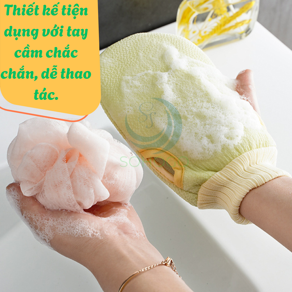 ✨Bộ Tắm Chăm Sóc Da 3 Trong 1 – Cọ Lưng + Găng Tay + Bông Tắm