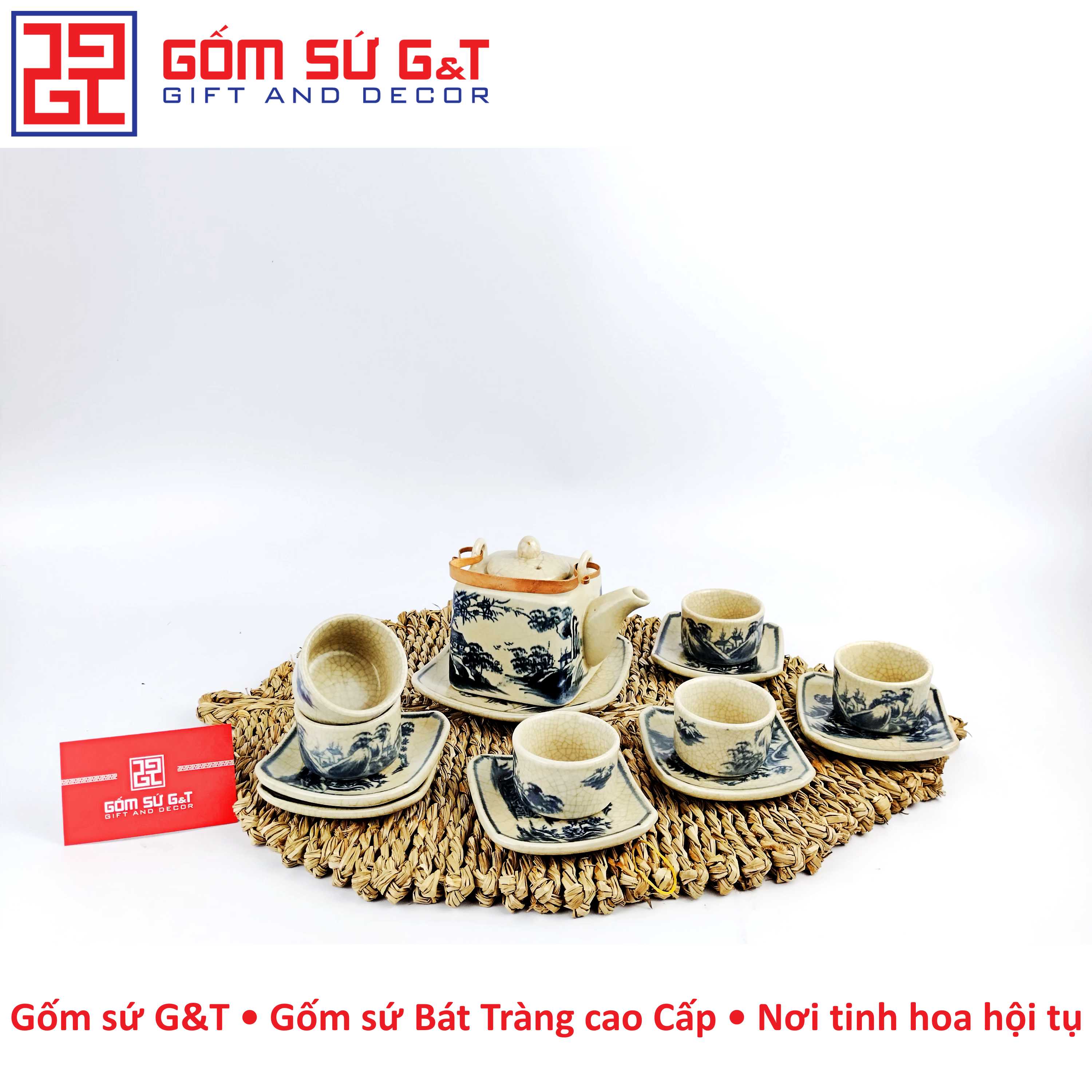 Bộ trà vuông sơn thủy men rạn là sự kết hợp hài hòa giữa phong cách cổ điển và nét đẹp truyền thống của nghệ thuật gốm sứ Việt Nam. Bộ sản phẩm này thu hút người xem bởi những đường cong uốn lượn tinh tế, hòa quyện với các họa tiết mang ý nghĩa văn hóa và truyền thống đặc sắc. Mỗi chi tiết được làm thủ công tỉ mỉ bởi những nghệ nhân lành nghề, tạo nên vẻ đẹp độc đáo không thể tìm thấy ở bất kỳ sản phẩm nào khác.
