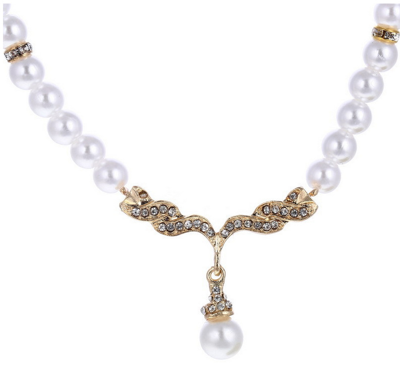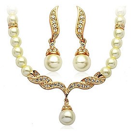 Bộ trang sức 2 món vòng cổ và đôi bông tai chuỗi ngọc trai đơn giản tinh tế, nổi bật, lộng lẫy. Thích hợp trang điểm cô ngày cưới, chụp ảnh cưới, chụp ảnh dã