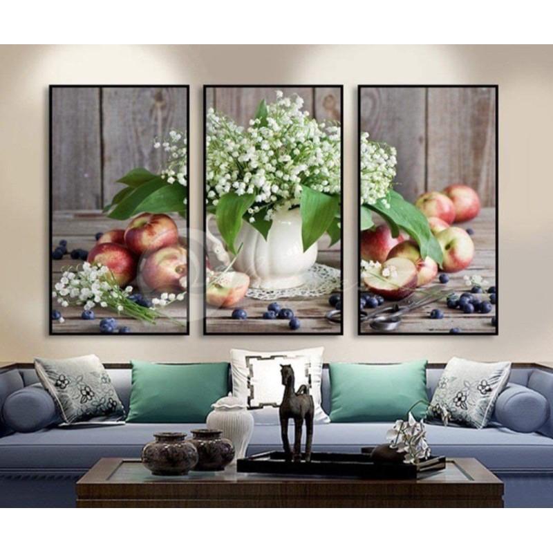 - Bộ sản phầm gồm: bộ tranh gắn móc + móc treo tranh Tranh thiết kế ốp sát tường khi treo, tạo cảm giác ảnh nổi 3D trên nền tường. Kích thước 40x60cm 1 tấm, 3 tấm cao 60cm, dài 1,2m