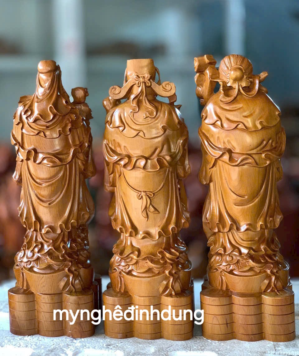 Bộ tượng tam đa phúc lộc thọ cao 20cm và 30cm chất liệu gỗ bách xanh nguyên khối