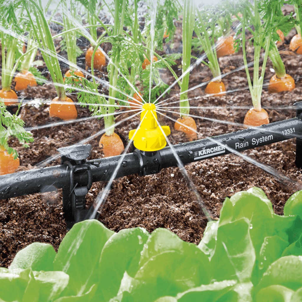 - Việc căn chỉnh góc phun có thể được điều chỉnh theo chiều ngang và chiều dọc nhờ đầu xoay. Trên vòi có thể điều chỉnh lượng nước từ 0 - 55 l / h tùy theo yêu cầu và nhằm bảo tồn tài nguyên, Bán kính vòi phun lan tỏa đến 1 mét. Hệ thống tưới nước Kärcher Rain System hiệu quả cao hoạt động với áp suất 4 bar, có vòi 1/2 "với vòng nhỏ giọt và vòi phun, đồng thời kết hợp các ưu điểm của tưới nhỏ giọt và tưới thông thường." Kärcher Rain System "có thể được điều chỉnh để hầu hết mọi khu vườn và hoạt động hoàn hảo với SensoTimer để kiểm soát việc tưới nước theo nhu cầu. ĐẶC ĐIỂM VÀ TÍNH NĂNG