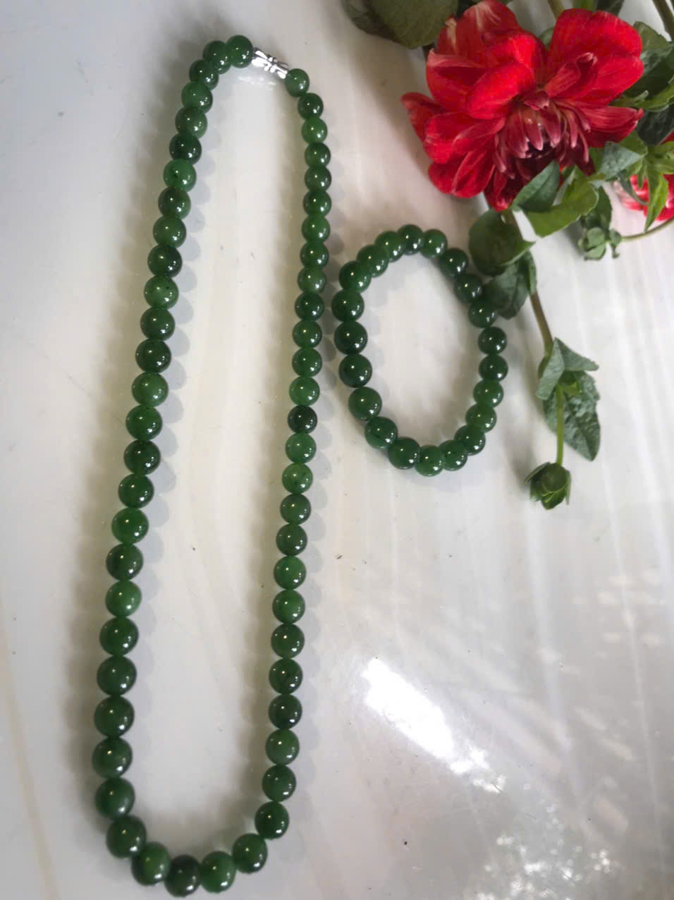 Bộ Vòng Chuỗi Đeo Cổ 8li Và Vòng Tay 9li5 Đá Ngọc Phật Xanh tự nhiên đẹp hay ngọc bích