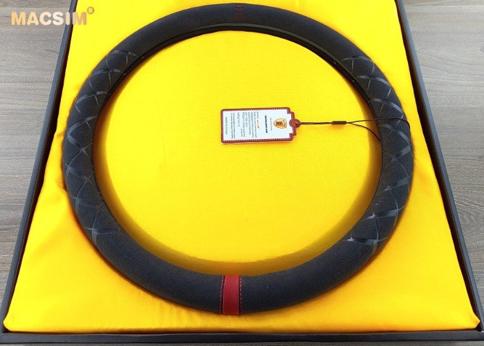 Bọc vô lăng cao cấp Macsim mã 8858 màu đen đỏ - Bọc vô lăng được sản xuất thủ công - Chất liệu da lộn chất lượng cao -