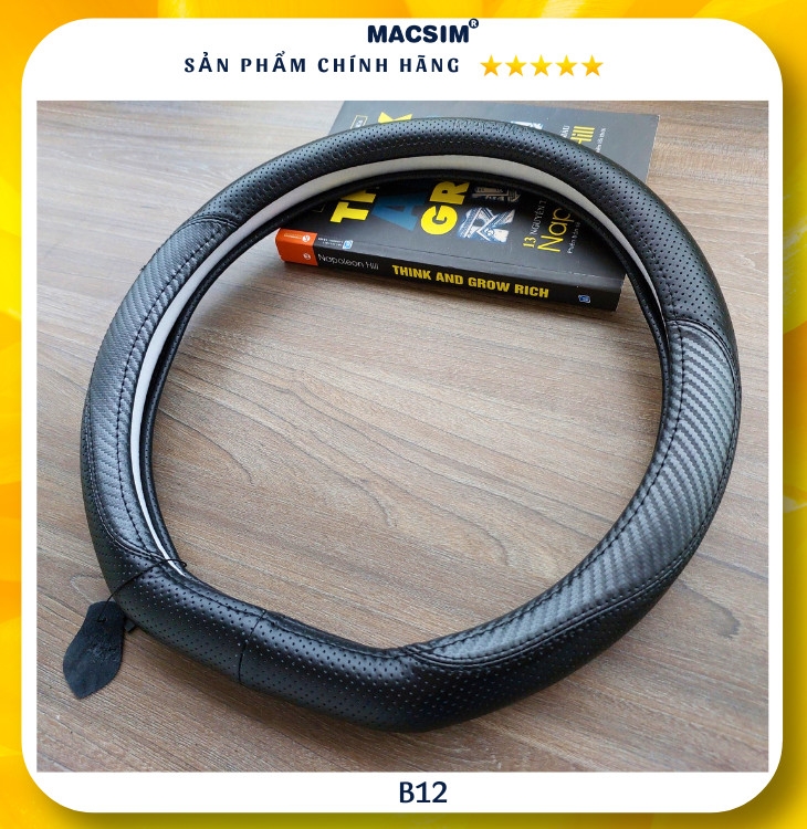 Bọc vô lăng cao cấp Macsim mã Dcut B12 màu đen chỉ đen chất liệu da thật 100%,- chất liệu da thật 100%, lõi ruột vô lăng được sản xuất từ silicon cao cấp mềm mại dẻo dai không gây hại cho vô lăng nguyên bản theo xe, an toàn cho sức khỏe người sử dụng. Bọc vô lăng Macsim khâu tay thủ công size M phù hợp các loại xe.