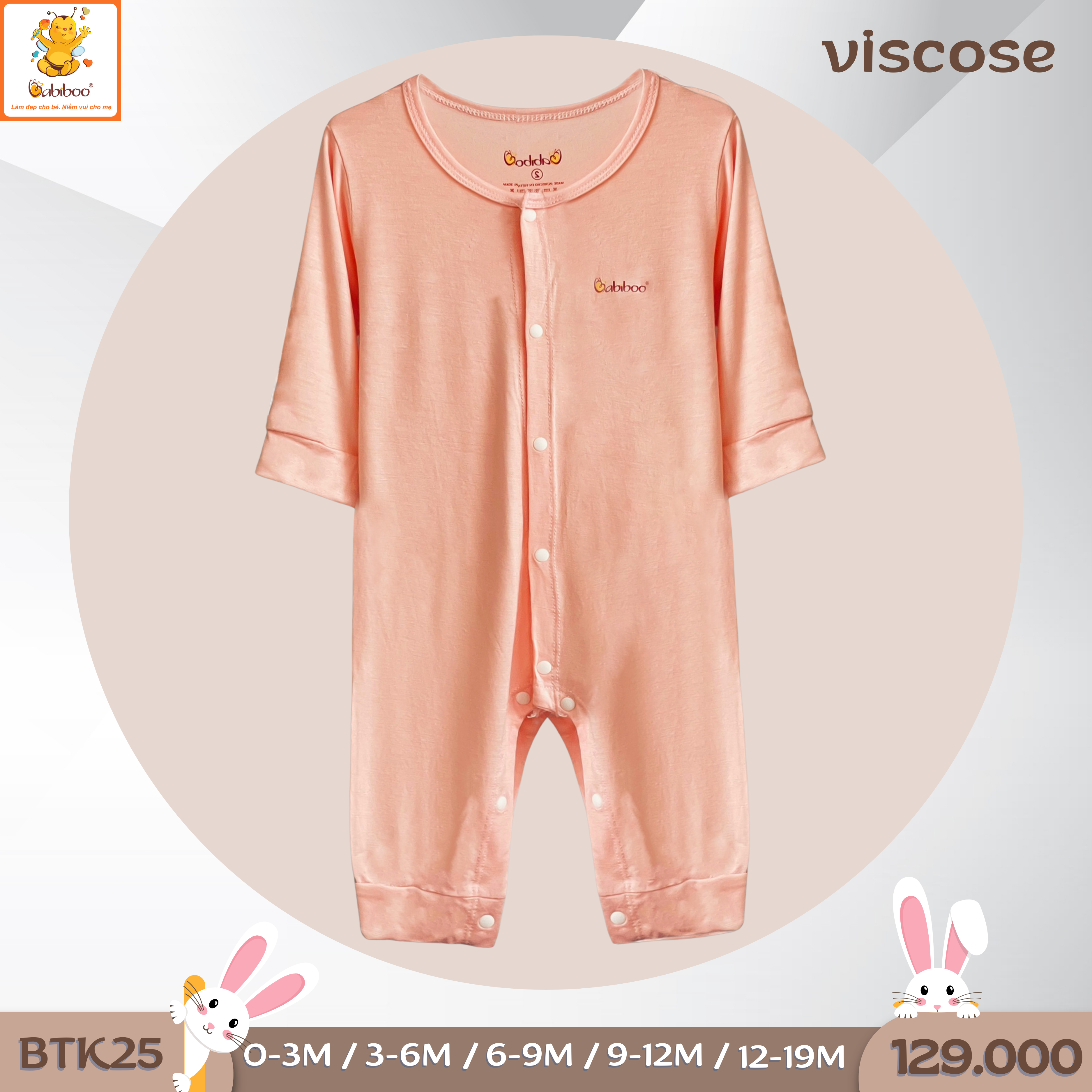 - Chất liệu: Chất liệu vải viscose mềm mại, thoáng mát, thấm hút mồ hôi rất tốt, không gây kích ứng, không bị xù lông, đảm bảo an toàn tuyệt đối với làn da nhạy cảm của bé.
