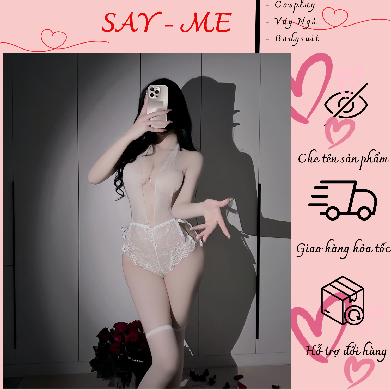Cosplay Hóa Trang Nữ Y Tá, Trang Phục Cosplay, Đồ Ngủ Cosplay, Bodysuit Xuyên Thấu C066 Chất liệu : - Vải tổng hợp co dãn, ren mềm, thoáng khí , thoải mái vận động. -