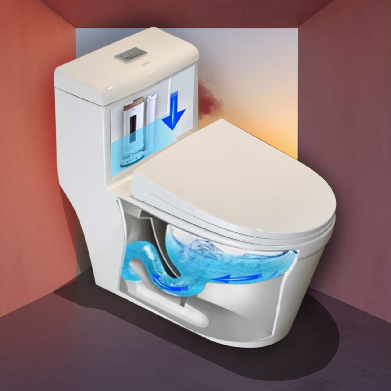 ✨Bồn cầu sứ tráng men chống bám bẩn cao cấp Hiwin MT-2216