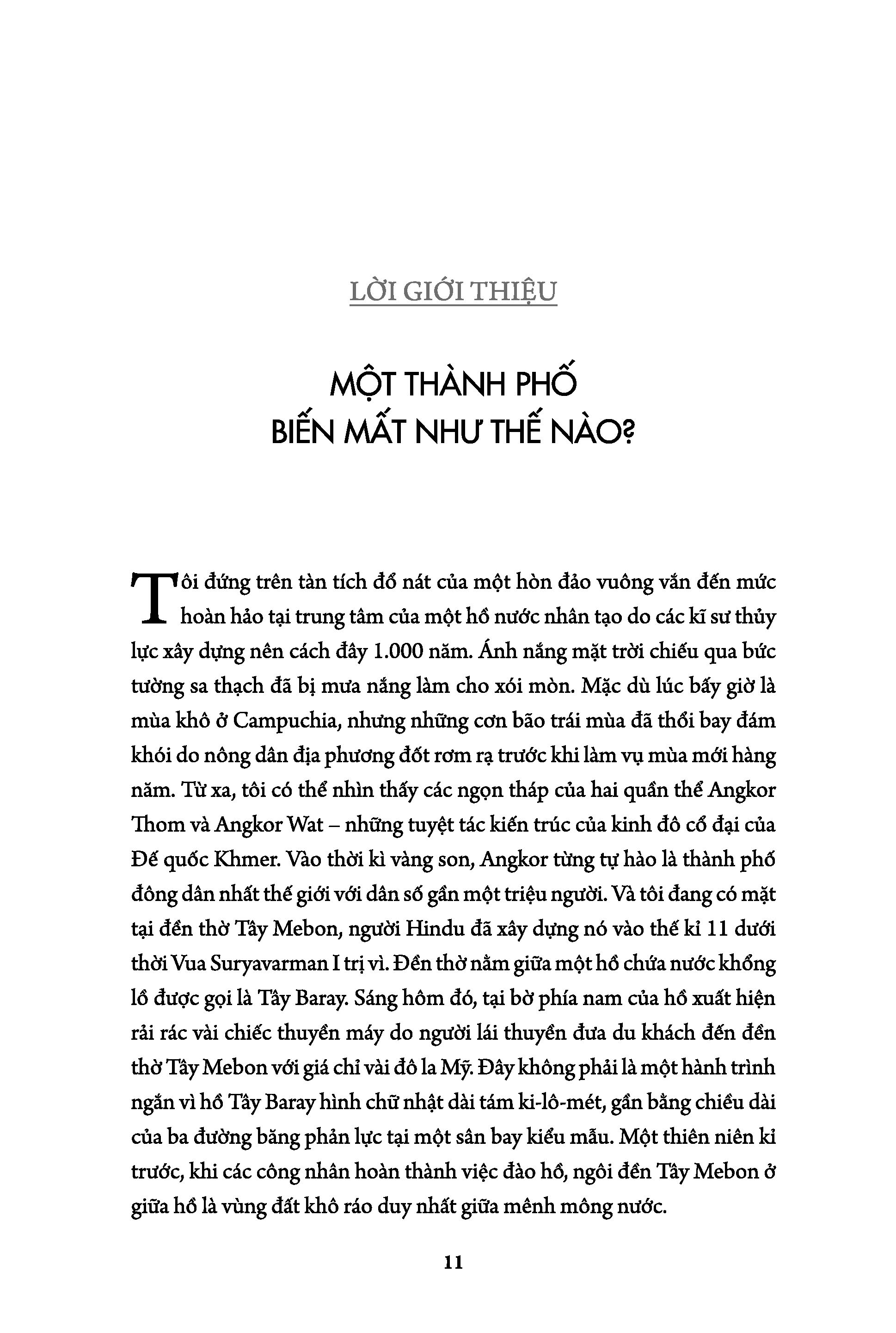 Vào thời kì vàng son, Angkor từng tự hào là thành phố đông dân nhất thế giới tại thời điểm đó với dân số gần một triệu người. Các nhà vua của đế quốc Khmer (Campuchia ngày nay) đã cho xây dựng cung điện, đền thờ, đường sá, những hồ chứa nước lớn, nổi bật trong số đó là hai hồ chứa nước khổng lồ là Đông Baray và Tây Baray. Quần thể Angkor Thom và Angkor Wat cũng là những tuyệt tác kiến trúc ra đời trong thời kì đế quốc Khmer tồn tại.