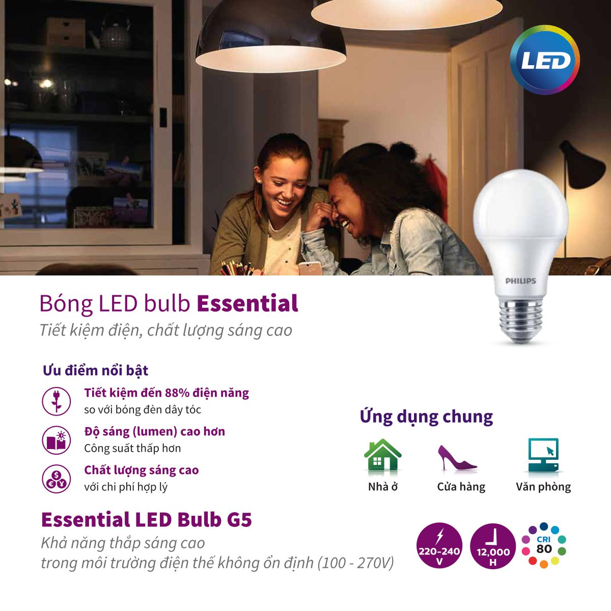 Bóng đèn LED Bulb Essential Philips có 2 màu ánh sáng cơ bản: