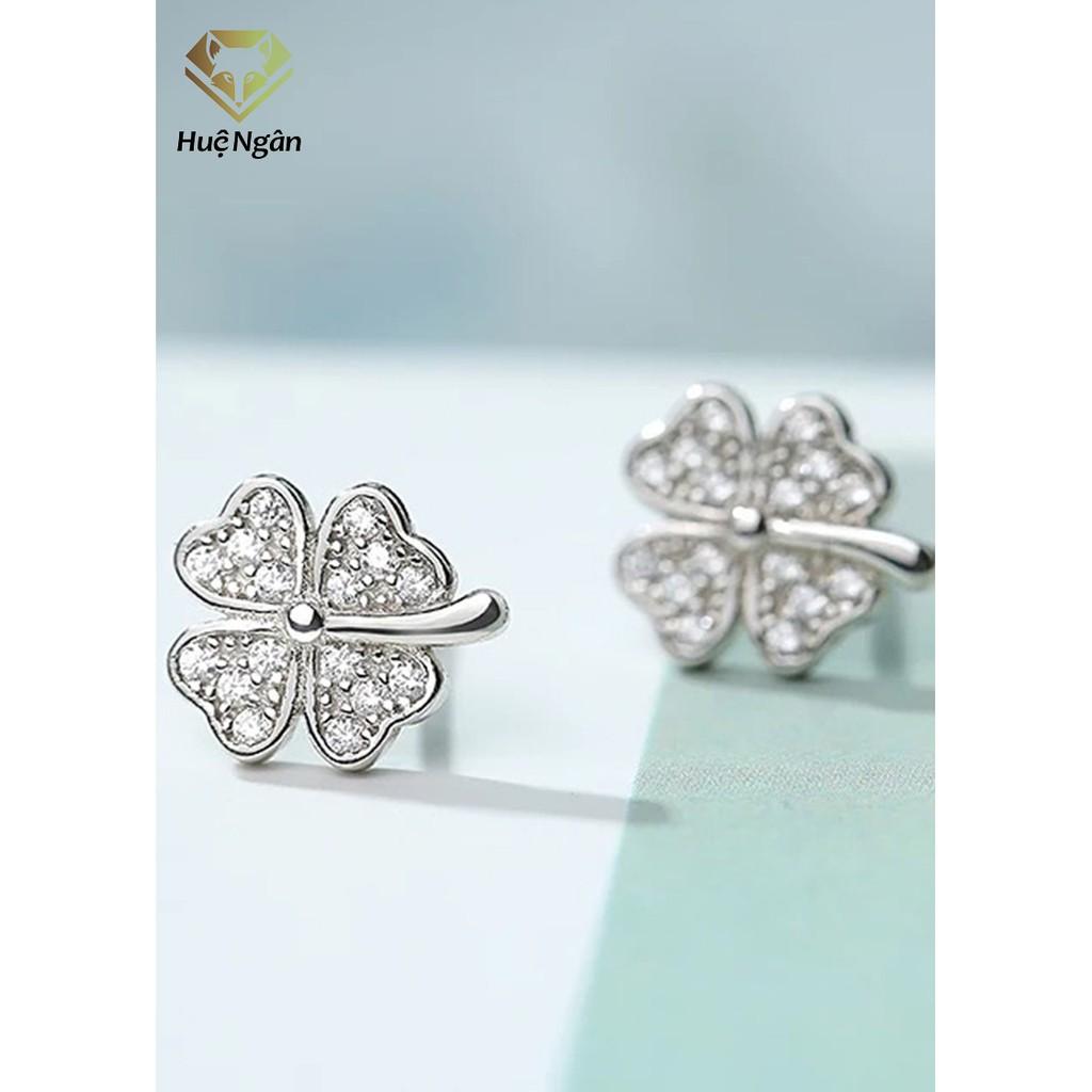 Khuyên tai bạc 925 cao cấp Cỏ 4 lá may mắn đính đá tinh tế