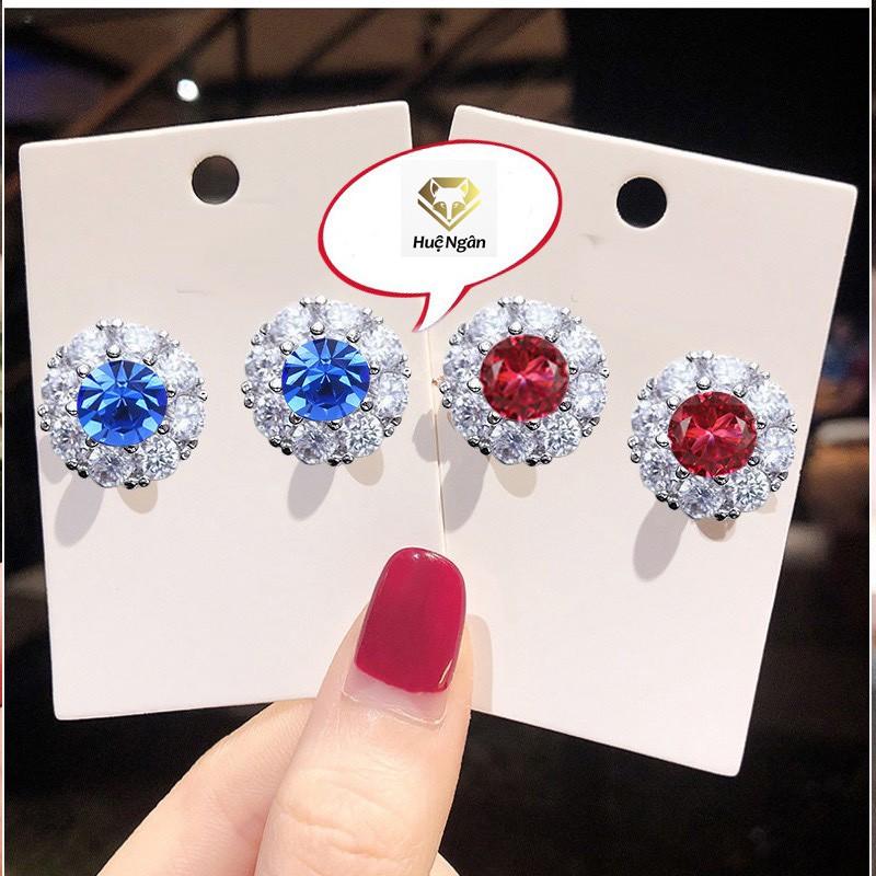 Khuyên tai bạc nữ vòng tròn đính đá